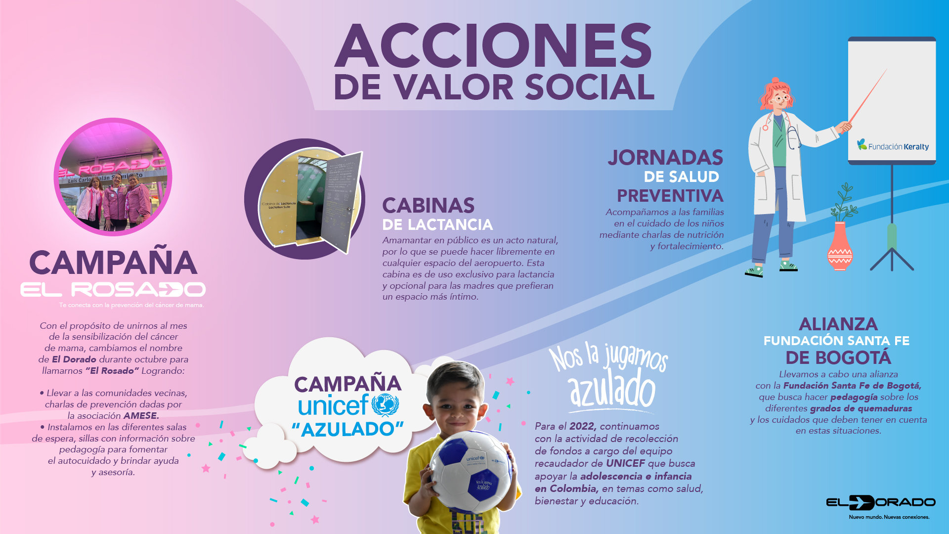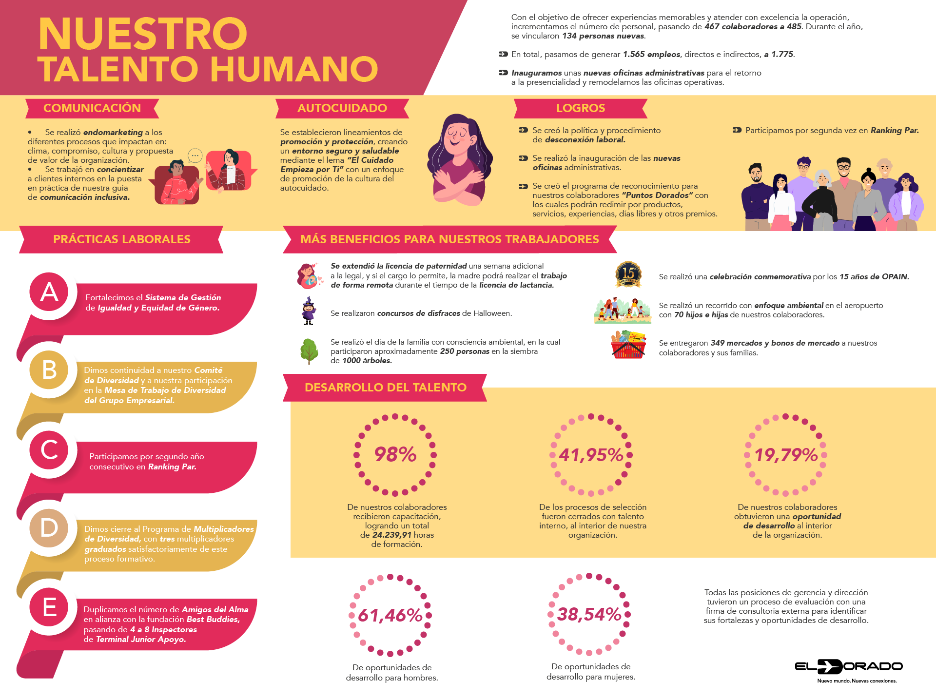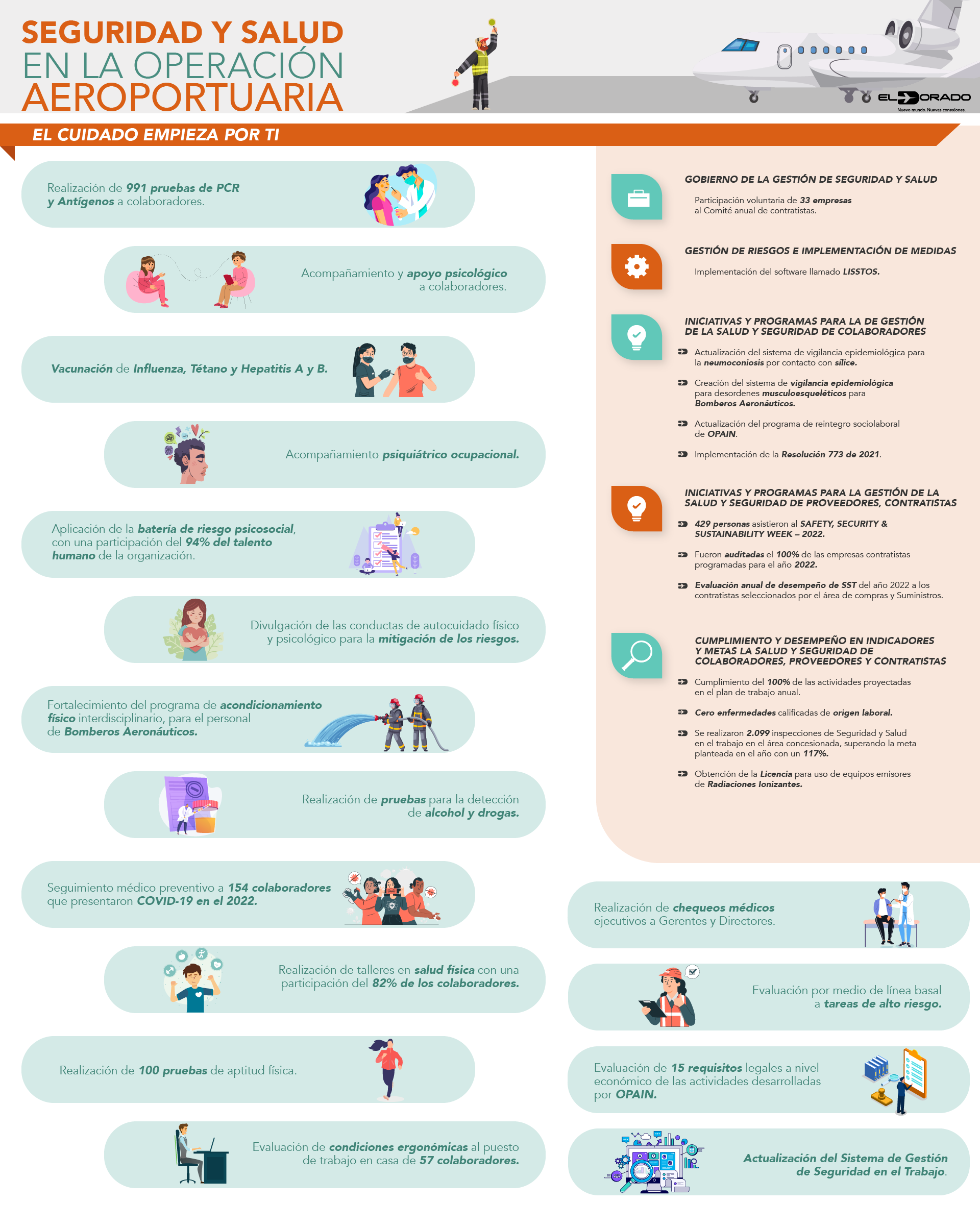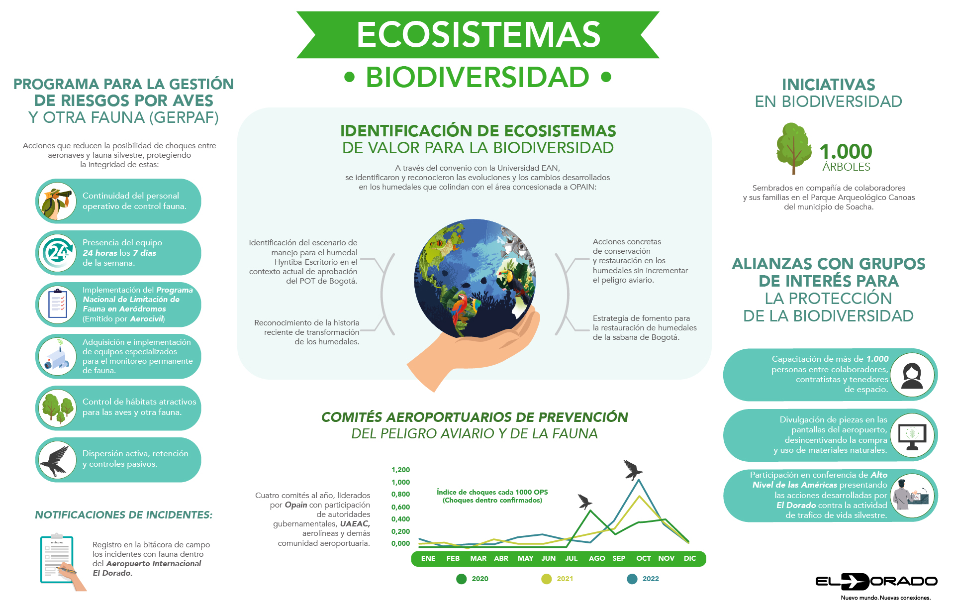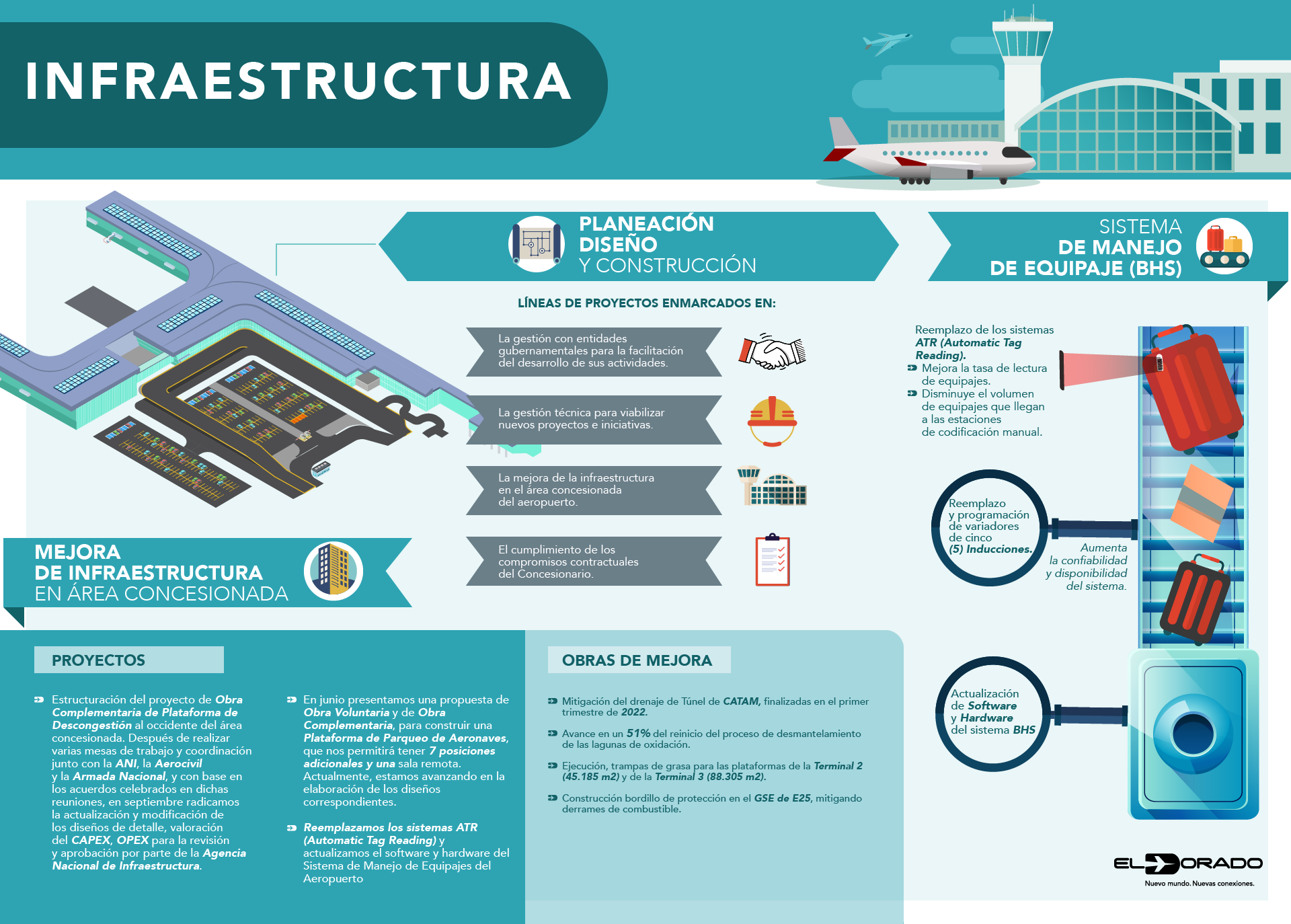 En 2023, 39,5 millones de pasajeros se movilizaron por el Aeropuerto Internacional El Dorado, una cifra récord que nos llena de orgullo y que, a la vez, nos motiva a continuar construyendo conexiones relevantes con viajeros y visitantes, con nuestros colaboradores y con las comunidades vecinas, mediante la puesta en marcha de iniciativas innovadoras y sostenibles que interpretan sus necesidades y deseos.